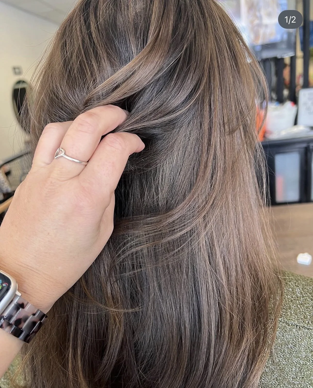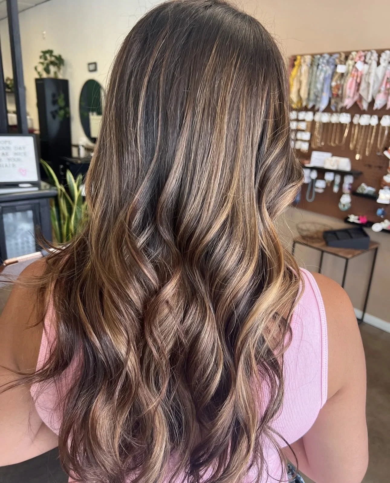 From root touch-ups to full color transformations ā Iām all about healthy, beautiful hair that fits your life Brunette balayage Balayage Foiliage on a deep brunette Blended natural results on a color correction Heavily weaved full head of highlights Full Blonde Highlight